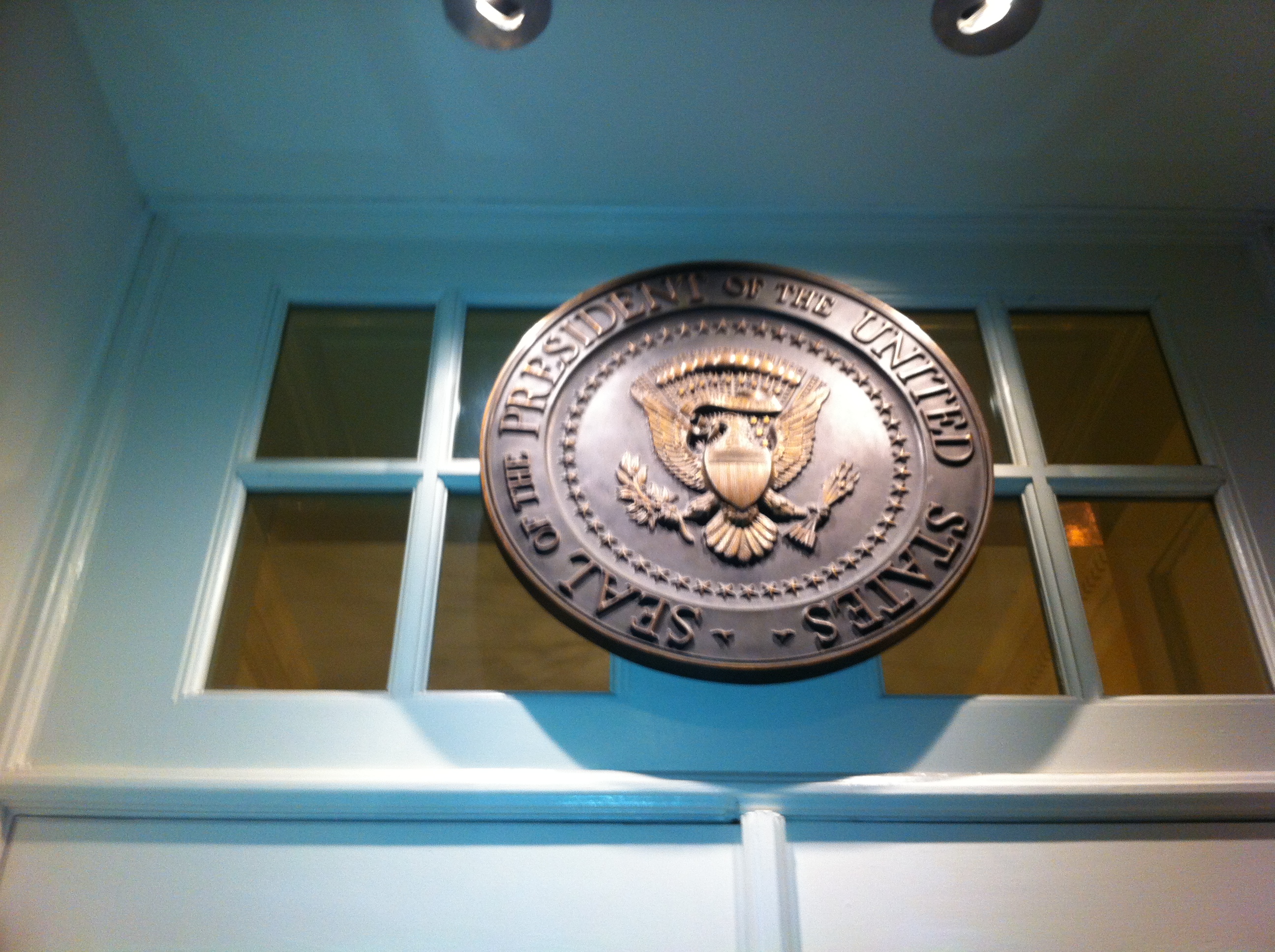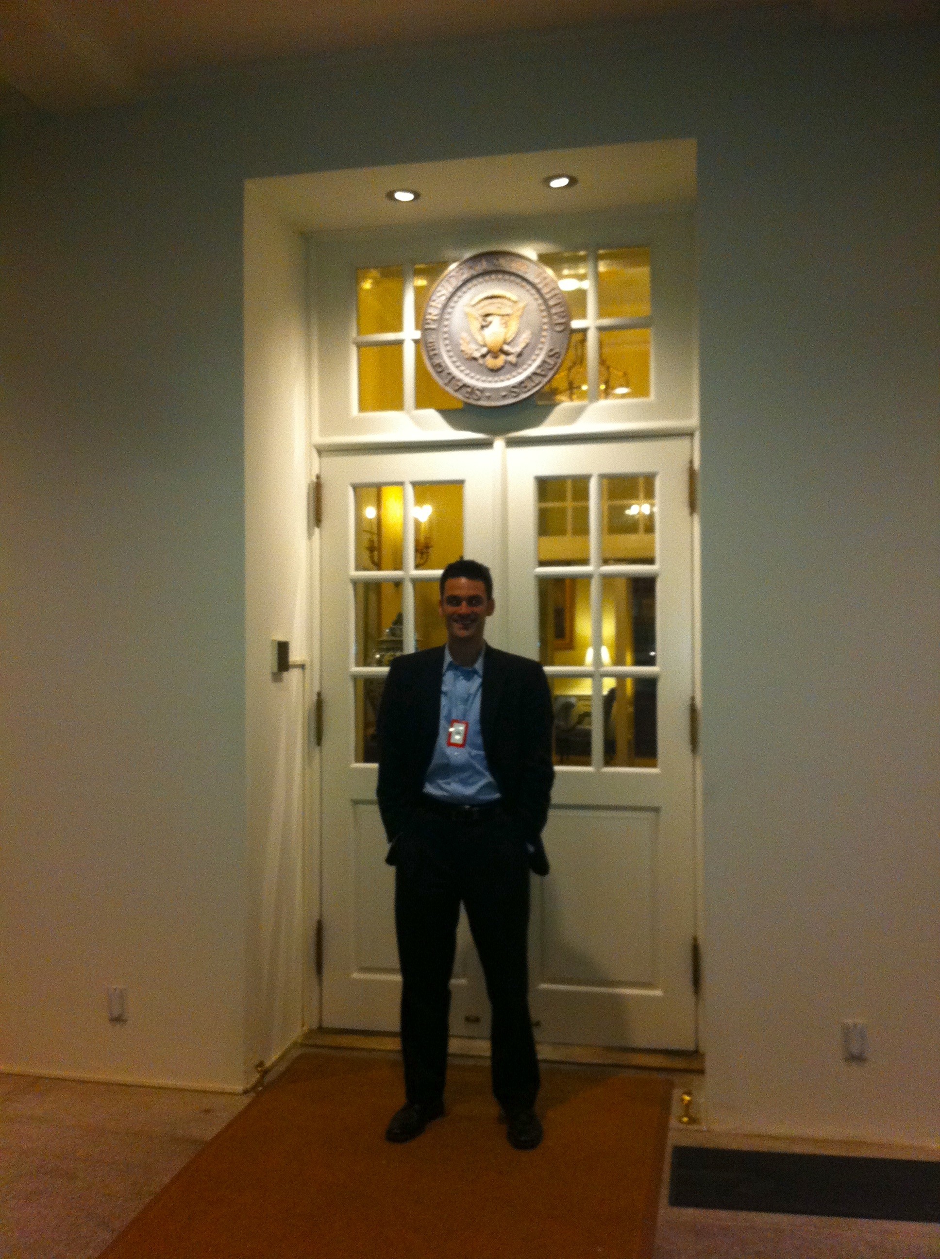 When I was in DC this week Caitlin took me on a tour of her office – which also happens to be the President’s Office, in case that wasn’t abundantly clear – and by any account it exceeded all expectations. Before even entering the building, we ran into HHS Secretary Kathleen Sebelius and House Minority Leader Nancy Pelosi. Then, the Vice President walked by when we were in the entryway – not a bad first five minutes.
